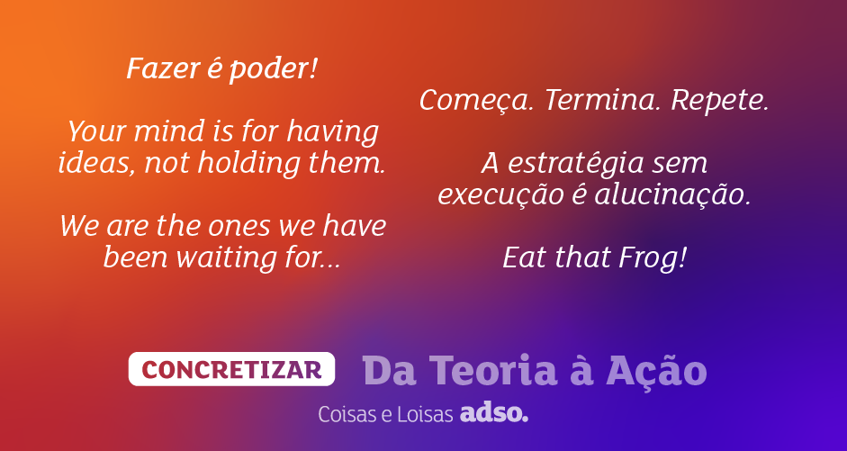 No meio disto tudo, continuo a ter como verdadeiro calcanhar de Aquiles a CONCRETIZAÇÃO. Faço muitas listas, estruturo bem as ideias, mas por vezes falho no último passo. É como no futebol: uma boa jogada que termina com a bola a bater na trave. E às vezes passo muito tempo no tiqui-taca (a procrastinar).